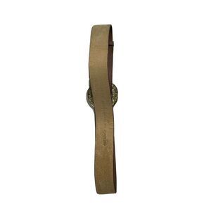 Gail Labelle Genuine Leather Belt Size Large Brown Seashells Circle Gold tone adjustable. Measurements in photos. Very good pre-owned condition. Small dark area on tip of leather. see photo. Comes from smoke free environment.