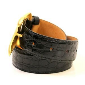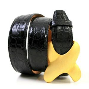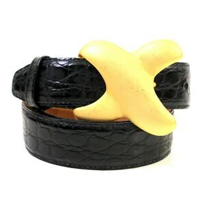 Gail Labelle BLACK CROCO EMBOSSED LEATHER 1.25"Wd WOMEN'S DRESS BELT Sz M (R13