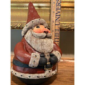 Gail Laura Folk Art Santa Large Round Heavy Sculpture .