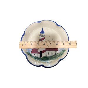 Gail Miller Handcrafted Lighthouse Nautical Themed Ceramic Bowl and Plate