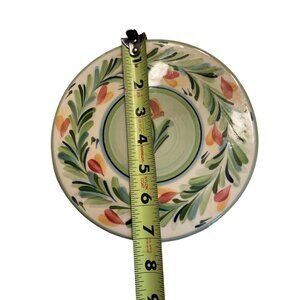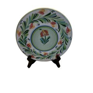 Gail Pittman 7” Plate with Black Stand Ivory/Off White Multi Color Mainly Greens