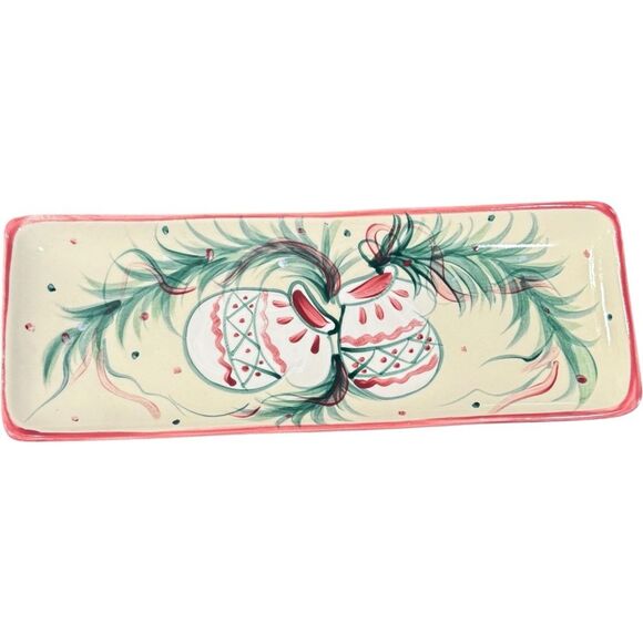 Gail Pittman Holiday Christmas Ornament Rectangular Red Green Tray Platter.