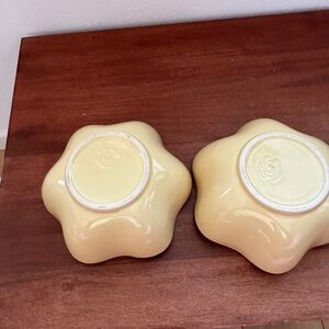 This is a set of two ruffle edge bowls. As shown. From a pet free smoke free home. Color is a buttery yellow.