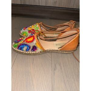 Gaimo Colorful Paisley Embroidered Espadrille Strappy Ankle Tie Sandals Size 38