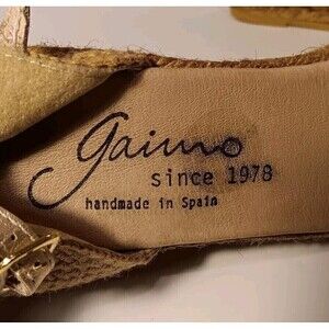 Elevate your shoe game with these stunning Gaimo handmade espadrilles. The black, tan, and metallic design is sure to turn heads, while the ankle straps provide a secure fit. Perfect for any woman looking for a stylish and comfortable sandal, these shoes feature a buckle closure, wedge heel, and high heel height of 3-3.9 inches. Crafted with fabric upper material and straps, these sandals are both durable and fashionable. With a theme of metal and a brand name of Gaimo, these shoes are a must-have for any fashion-forward woman. Available in US shoe size 10.5, these sandals are perfect for any occasion.