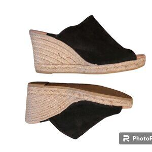 Gaimo Black Suede Wedge Espadrille Open Toe Heels