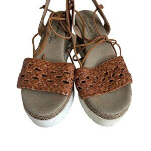 Gaimo Womens Brown Wedge Sandals Size 7 With Lace-Up Ankle Strap & Espadrille Pl