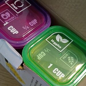 Colorful portion control containers by Gainwell. Includes multiple vibrant colors for easy meal planning.