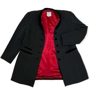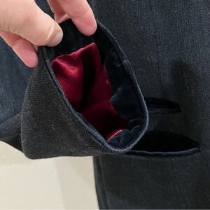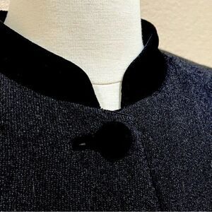 Black velvet hem around pockets and front opening