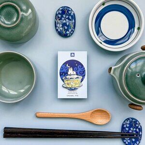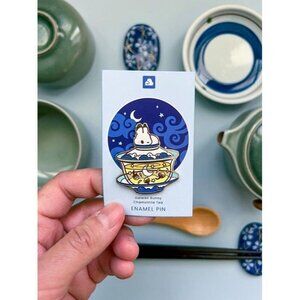 Gaiwan Bunny Enamel Pin - Chamomile Tea & Rabbit Jewelry - Celestial Brooch