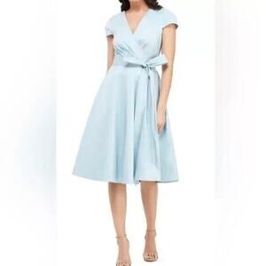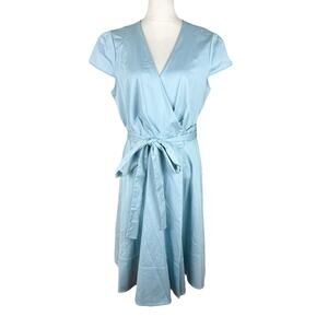 Gal Meets Glam Addison Sea Breeze Wrap Dress Fit Flare Tie Bow Waist Size 16