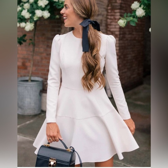 Gal Meets Glam Celeste Fit and Flare Ivory/White Long-Sleeve Dress, Size 6