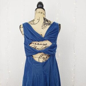 boatneck, sleeveless, hidden side zipper, twist back cutout, midi length and luxe velvet material.