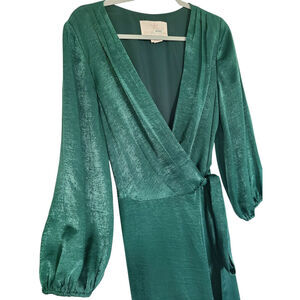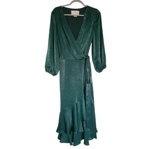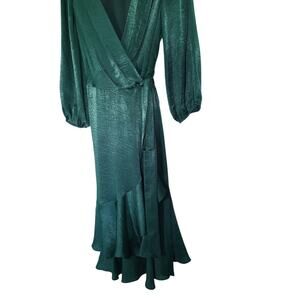 Gal Meets Glam Collection Jennifer Shimmer Satin Wrap Midi Dress Emerald Green