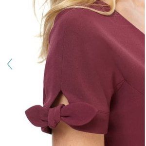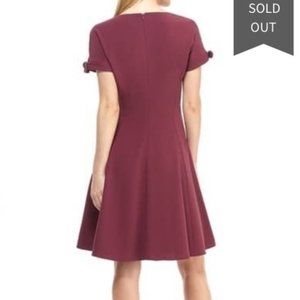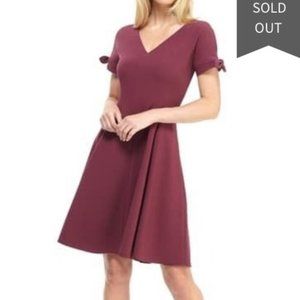 Feminine shape prevails unapologetically on this crepe fit-and-flare dress with bow-tied cuffs as the only extra detail.