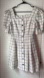 Dress has slightly pleated hem, puff sleeves, decorative buttons on the front, hidden side pockets and zips in back to close. Lined
