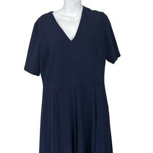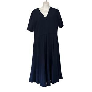 Gal Meets Glam Edith City Crepe Fit & Flare Midi Dress Navy Blue Size 12 New