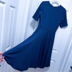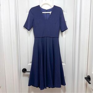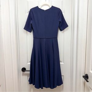 Gal Meets Glam Edith V-neck Fit & Flare with Pockets Midi Dress Navy Size 4