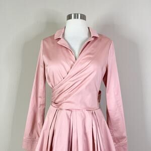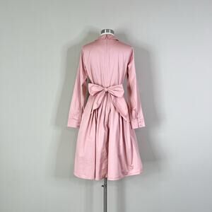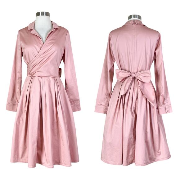 Gal Meets Glam | Elisabetta Pink Bow Wrap Retro Fit Flare 3/4 Sleeve Dress 4