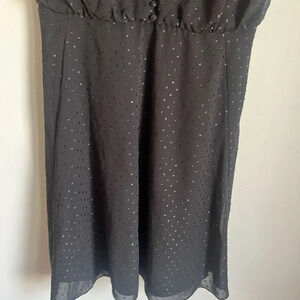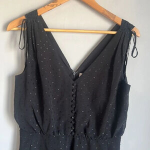 Features: Delicate ties, chiffon freckled with fil coupé polka dots, breezy, twirl-ready midi skirt, V-neck, Front rouleau buttons, Sleeveless, Hidden back zip closure, Lined, 100% Polyester, Lining 100% Polyester