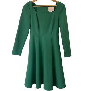 Gal Meets Glam Green Holly Square Neck Long Sleeve Fit & Flare Dress • Size 2