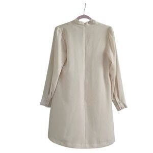Gal Meets Glam Ines Tie Neck Long Sleeve Shift Dress Cream Sz 6