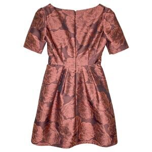 Gal Meets Glam Ingrid Rust Rose Floral Jacquard Pleated Fit & Flare Mini Dress. Perfect for special occasions this fall or Thanksgiving! Features fit & flare mini silhouette, jacquard rose fabric, v-neck, pleating, hip pockets, back hidden zipper closure, fully lined. All photos except for modeled shots are of the actual item. Size 00P. Color Rust. Excellent condition. 100% polyester. Measurements (approximate): PTP 15.25", waist 25.5", length 30.25", sleeve length from shoulder 9.5". This style originally retailed for $178 and is no longer available. Tags: autumn, formal, event, cocktail, petite.