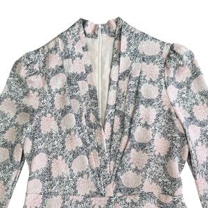 Gal Meets Glam pink navy blue floral Lizzie midi dress. V-neck with pleats. Long, puffed sleeves, full skirt. Rear zipper. Fully lined. Perfect for a shower, brunch, wedding, or other special occasion! Excellent used condition: no stains, holes, or pills.