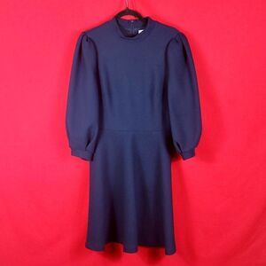 Gal Meets Glam Maggie Dress Puff Sleeves Navy Blue Womens Size 10