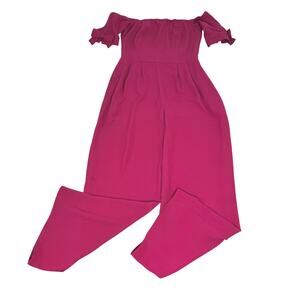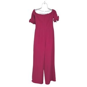 Gal Meets Glam Meredith Crepe Off Shoulder Jumpsuit Magenta Pink 6