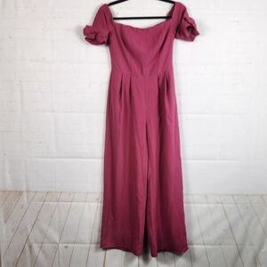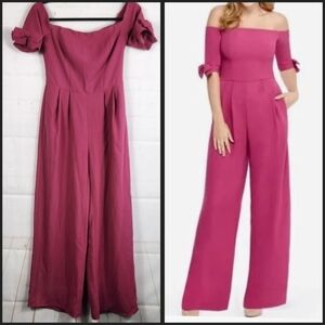 Gal Meets Glam Meredith Crepe Off-The-Shoulder Wide-Leg Jumpsuit Magenta Pink 0P