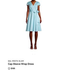 Gal Meets Glam Plus Size 16 Cap Sleeve Midi Wrap Dress Color Sea Breeze