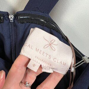 Gal Meets Glam Nicole Jumpsuit Size 4 Navy Blue Cropped Wide Leg Square Neckline