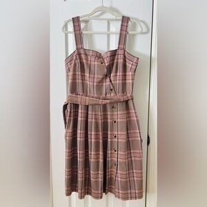 Gal Meets Glam Pink and Brown Plaid Madison Tie-Front Mini Dress Size 12