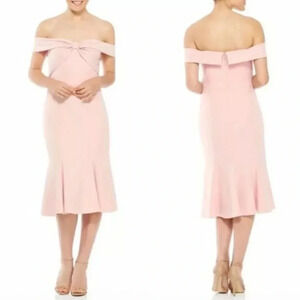 Gal Meets Glam Tyler Off The Shoulder Midi Dress Ballet Pink Size 18 NWT New