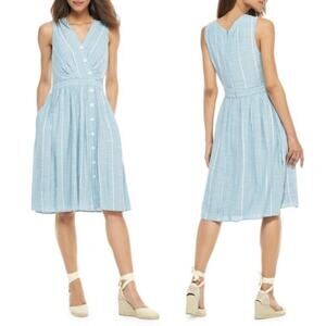 Gal Meets Women's Glam Jill Stripe Button Up V-Neck Dress in Blue Size 6