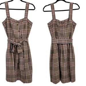 Gal Meets Glam Madison Tie Front Dress Retro 60s Apron Pinafore Plaid Pink Sz 10