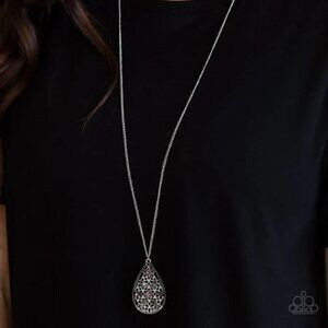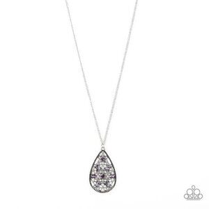 Dotted in a variety of purple rhinestones, a silver teardrop pendant swings from the bottom of a lengthened silver chain for a refined look. Features an adjustable clasp closure.