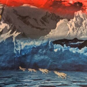 Double sided with amazing glacial and spatial graphics. 88/12 polyester/cotton material blend. Excellent condition. Music courtesy of Black Sabbath.