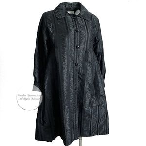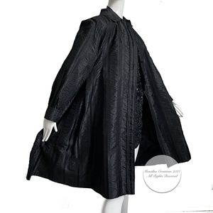 Galanos Swing Coat Black Striped Satin Evening Wear Vintage Formal Rare