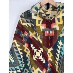 Galapagos Confecciones Colorful Handmade Poncho O/S Aztec Geometric Wool Blend
