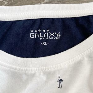 Galaxy by Harvic White/Navy Flamingo Print Tee Shirt size XL NWT