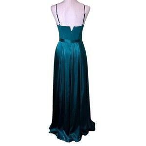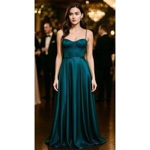 Galena Signature Teal Satin Maxi Spaghetti Strap Corset Bodice Flowy A-Line Sz 2