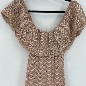 Galeria Tricot Tan White Striped Off The Shoulder Crochet Knit Maxi Dress Small