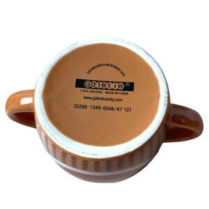Galerie Sock Monkey Two-Handle Ceramic Mug โ Brown Red Knit Pattern Cup