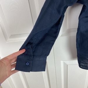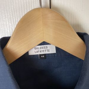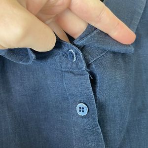 Galeries Lafayette 44 100% Linen Button Up Shirt Lagenlook Boxy Blue capsule
