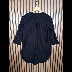 Galeries Lafayette Tunic Top Large / XL Womens Black 100% Cotton Henley Popover