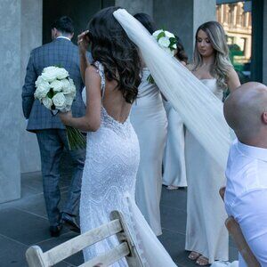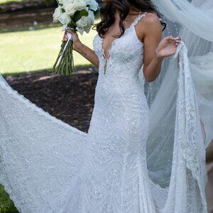 It is simply divine, elegant and timeless. The honest reason why I'm selling this is because it's too much of a beautiful gown to be sitting in a box forever. I hope that the next woman who wears this feels just as beautiful as I did on their wedding day.