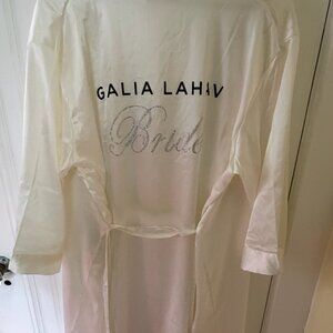Authentic Galia Lahav bridal getting-ready robe in a soft ivory tone. Features “Galia Lahav” across the back with sparkling rhinestone “Bride” script underneath. Lightweight and elegant with a relaxed fit, perfect for wedding morning photos, hair and makeup, or honeymoon lounging.