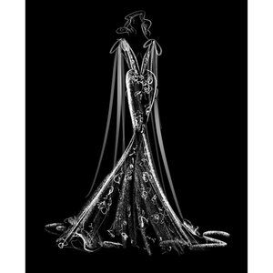 Each 3D petal is placed and stitched with love, crafted in over 210 hours. Its delicate textures and needlework tells a story of fantasy, all made by human hands.